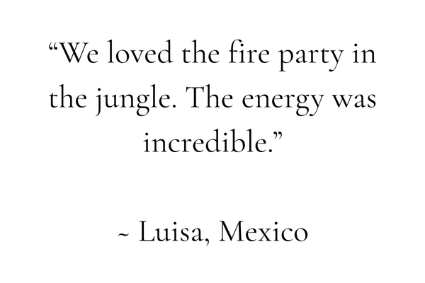 jungle fire circle | autumn equinox is for restoring balance by deepening your connection with the earth. jungle fire circle | winter solstice centers around water as a powerful medium for personal reflection. jungle fire circle | spring equinox is for releasing stuckness through free-spirited play with air. And the penultimate—jungle fire circle | summer solstice is for total energetic activation with jungle fire.